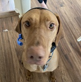 He is a four year old Viszla, he is used to being in boarding facilities and is very sweet with people. Whiskey can get overly excited with other dogs.