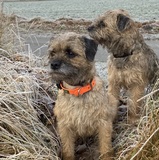 Es sind zwei Border Terrier Hündin ( 5 Jahre und 3 Jahre alt ) . Beide haben eine Jagdliche Stöberprüfung und Zuchtzulassung. Im Dezember waren beide Hündinnen läufig . Sie leben mit einer 7 jährigen Deutsch Drahthaar Hündin ( braucht keine Gassirun…