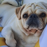 Oskar ist ein schmusebedürftiger Mops. Er geht gerne Gassi, er schläft und frisst für sein Leben gern. Im August wird er 4 Jahre alt.